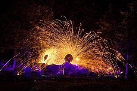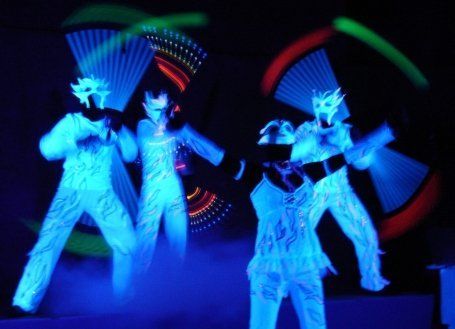 Aus dem kontrollierten Umgang mit dieser Urgewalt ist in fast allen Kulturen ein archaisches Ritual entstanden: Der Tanz mit dem Feuer. Alternativ bieten wir moderne Lichtshows mit LED- und Schwarzlichttechnik.